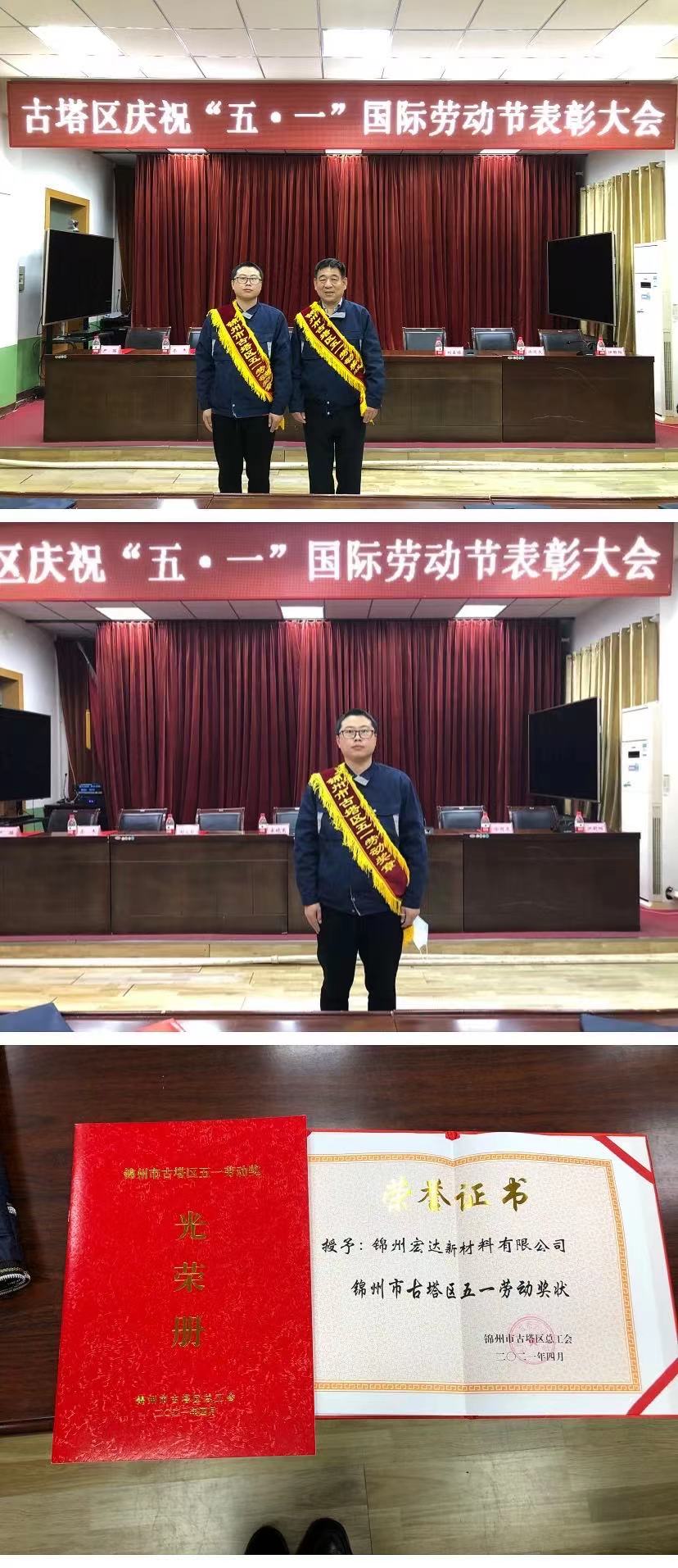 2021年4月29日上午8點(diǎn),錦州市古塔區慶祝“五一”表彰大會(huì )暨隆重召開(kāi)。大會(huì )對古塔區五一勞動(dòng)獎狀、五一勞動(dòng)獎?wù)?、工人先鋒號獲獎代表進(jìn)行了頒獎,我公司質(zhì)量部負責人孫建峰同志被錦州市古塔區授予2021年“錦州市古塔區五一勞動(dòng)獎?wù)?rdquo;,授予錦州宏達新材料有限公司2021年“錦州市古塔區五一勞動(dòng)獎狀”。