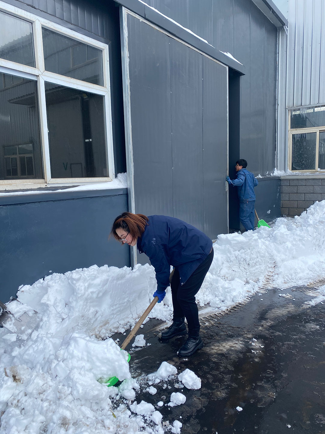 經(jīng)過(guò)連續的緊張作業(yè),工廠(chǎng)內積雪基本清掃干凈,確保將客戶(hù)的貨物第一時(shí)間發(fā)出!這次掃雪看似只是一個(gè)小小的活動(dòng),但卻能折射出一個(gè)公司的精神面貌和團隊凝聚力,不僅保證了各位員工和來(lái)訪(fǎng)客人的安全出入和道路交通的暢通,更重要的是,通過(guò)此次活動(dòng),充分體現出了公司員工良好的集體責任感和團隊協(xié)作精神。
